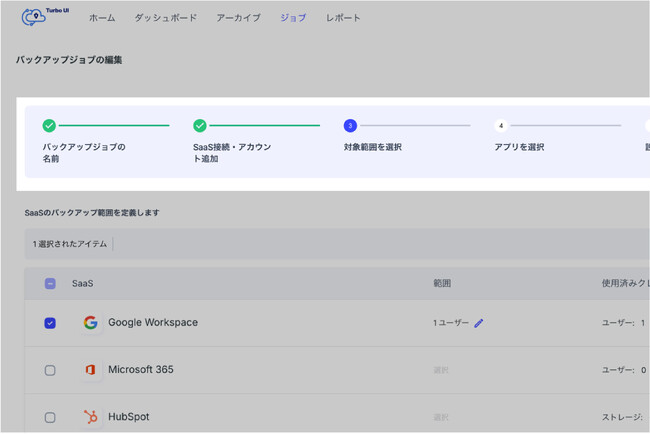 バックアップ設定の柔軟性向上バックアップジョブの設定がステップ形式のガイドにより、従来よりも簡単かつ直感的にお客様のニーズにあわせてカスタマイズできるようになりました。