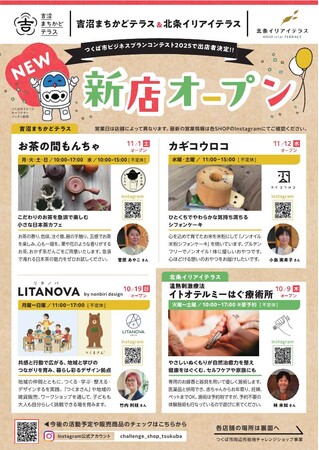 つくば市の空き店舗等を活用した周辺市街地チャレンジショップに今年の新たな店舗がオープンしました。【11/22(土)・12/21(日)】にはイベントを開催します!