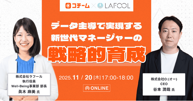 人的資本/ウェルビーイング経営支援を行う株式会社ラフール(本社:東京都中央区、代表取締役社長:結木啓太、以下「ラフール」)は、11月20日(木)に、組織データを活用したマネージャー育成とKPI運用の“正しい型”を学べる共催セミナー『データ主導で実現する新世代マネージャーの戦略的育成 ~ 目標・評価制度の運用は「KPI設定・運用術」で決まる ~』を開催します。