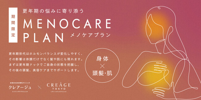 この度、女性のための人間ドック「クレアージュ東京レディースドッククリニック」(場所:東京都 千代田区有楽町)は、更年期世代の身体や頭髪・肌の変化に健診と治療でアプローチする期間限定プラン「メノケアプラン」の受診予約受付を2025年11月14日(金)より開始いたします。