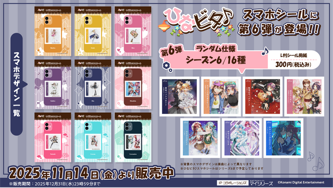 株式会社サムライソード(本社:東京都豊島区)は、KONAMIが展開するキャラクターバンドコンテンツ『ひなビタ♪』のスマホシール第6弾を、2025年11月14日(金)より提供開始します。