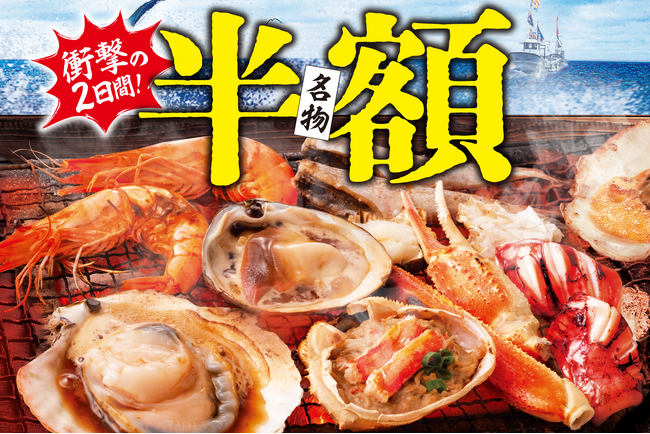イベントでは、貝やカニ、エビなどの浜焼き盛り合わせ「おまかせ浜焼き満載セット」(通常2,980円)が半額の1,490円と赤字覚悟の超特価で楽しめます。