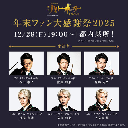 ロングラン4年目!舞台『ハリー・ポッターと呪いの子』年末ファン大感謝祭2025 開催決定!【出演者:福山康平/佐藤知恩/原嶋元久、浅見和哉/久保和支/大久保樹】