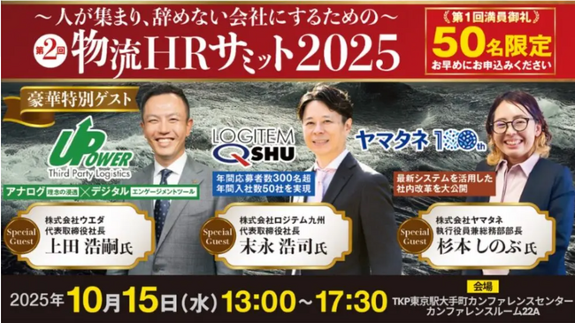 日本最大級の物流コンサルティングファーム 船井総研ロジ株式会社(本社:東京都中央区、代表:橋本直行、以下「船井総研ロジ」)は、2025年10月15日(水)13:00~17:30、「第2回 物流HRサミット」を開催しました。