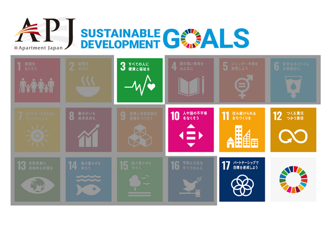 SDGs 17. パートナーシップで目標を達成しようApartment Japanは、日本全国の家主様や不動産事業者様との強固なパートナーシップを活かし、豊富な物件情報を外国人にわかりやすく発信しています。これにより、単に住まいを紹介するだけでなく、外国人が住みやすい部屋づくりや、安心・快適な生活に役立つ情報提供も推進しています。