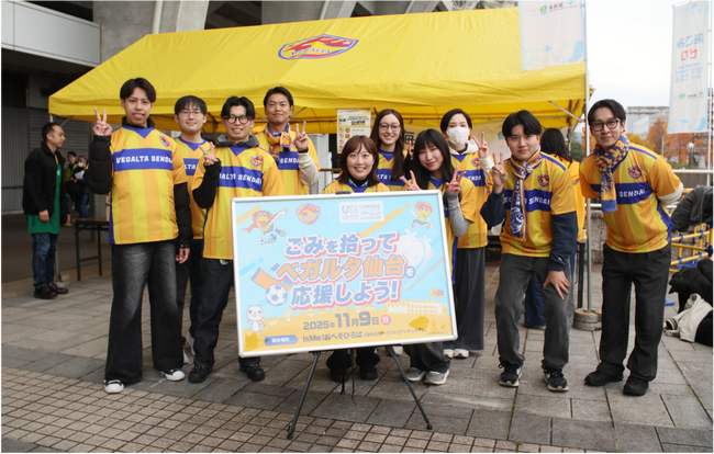 一般社団法人TOHOKU海にいいことプロジェクト(宮城海ごみなくし隊)は、2025年11月9日(日)に生活の中での街のごみ拾い活動の習慣化を目的として、ベガルタ仙台と連携した「ごみを拾ってベガルタ仙台を応援しよう!」を開催いたしました。