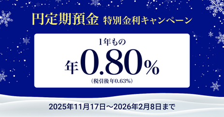 住信SBIネット銀行株式会社(本社:東京都港区、代表取締役社長(CEO):円山 法昭、以下「住信SBIネット銀行」)は、2025年11月17日(月)より、「円定期預金 特別金利キャンペーン」を開始いたしました。