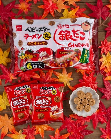 株式会社おやつカンパニー(本社所在地:三重県津市 代表取締役社長:横山正志)は、株式会社ホットランドホールディングス (本社所在地:東京都中央区 代表取締役社長:佐瀬守男)が展開する『築地銀だこ』とのコラボレーション商品として、「ベビースターラーメン丸(築地銀だこ たこ焼ソース味)6袋入」を2025年11月17日(月)より期間限定発売します。