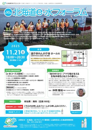 北海道では、北海道コカ・コーラボトリング株式会社、公益財団法人北海道環境財団との協働により、道内の水辺の環境保全活動に取り組む団体などを支援する『北海道e-水プロジェクト』を実施しており、この度、その一環として「第16回北海道e-水フォーラム」を開催します。