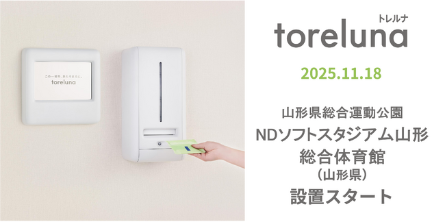 株式会社ネクイノ(大阪市北区、代表:石井 健一)は、トイレの個室で生理用ナプキンを常備し無料で提供するサービス「toreluna(トレルナ)」(以下 トレルナ)を、山形県が所有し、株式会社モンテディオ山形が管理・運営する山形県総合運動公園内の主要施設である、NDソフトスタジアム山形および総合体育館へ設置し、サービスの提供を開始いたします。なお、本サービスの山形県内への導入は、今回が初めての取り組みとなります。