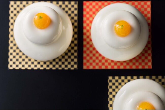 [画像3: https://prcdn.freetls.fastly.net/release_image/5113/3877/5113-3877-c2fbab69b778707e20b10badb2b427ae-3900x2600.jpg?width=536&quality=85%2C75&format=jpeg&auto=webp&fit=bounds&bg-color=fff ]お正月の象徴である「鏡餅」をイメージした、心和むスイーツ。和三盆糖を使ったしっとりとしたスポンジに、柚子風味の餅と抹茶ガナッシュを重ね、甘酒ムースでやさしく包みました。ホワイトチョコレートのグラサージュと、橙に見立てた金柑のコンフィチュールが新年の華やぎを添えます。
