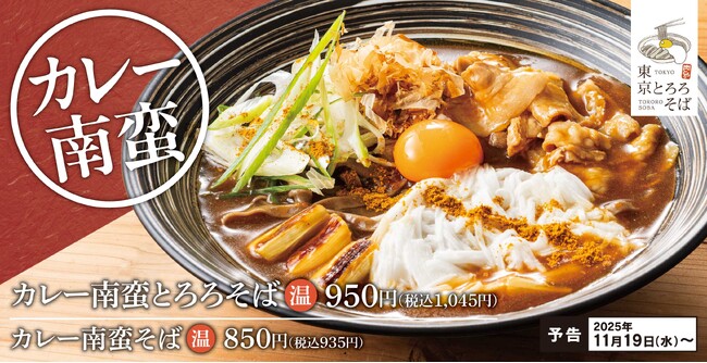 とんかつ専門店「かつや」などを展開するアークランドサービスホールディングス株式会社の子会社、「肉めし岡もと」などを運営する株式会社トビラダイニング(本社:東京都千代田区/代表:布施 裕康)は、とろろそば専門店「東京とろろそば」にて「カレー南蛮とろろそば」を2025年11月19日(水)より期間限定で販売開始いたします。
