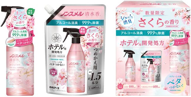 アルコール消臭×界面活性剤ゼロ処方で、乾きが速く、ベタつかない!ホテルクオリティの消臭剤に春限定の香りが登場!『ノンスメル清水香(せいすいか) さくらの香り』シリーズ 数量限定発売