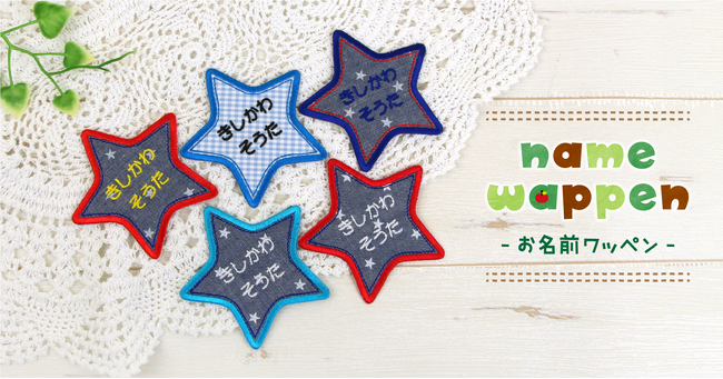 男の子に人気の《お名前ワッペン》に新カラー登場!おしゃれキッズの入園入学準備の名前つけに、ほし柄ダンガリー・ブルーチェックで長く使えるデザイン。