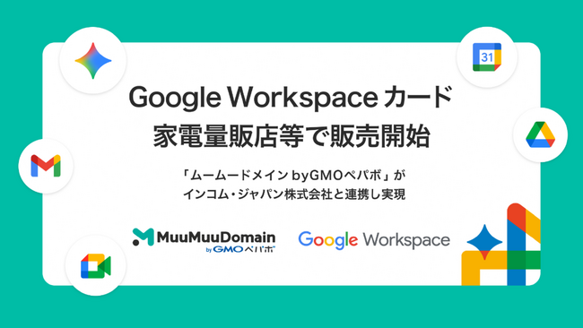 GMOインターネットグループのGMOペパボ株式会社(代表取締役社長:佐藤 健太郎 以下、GMOペパボ)が運営するドメイン取得サービス「ムームードメイン byGMOペパボ」(URL:https://muumuu-domain.com/)は、インコム・ジャパン株式会社(代表取締役:荒井 琢麿 以下、インコム)と連携し、企業や事業者が手軽に Google Workspace を導入できる Google Workspace カードを2025年11月18日(火)より全国の主要家電量販店にて販売開始いたします。
