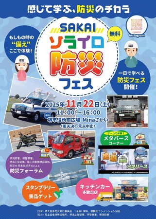 株式会社Meta Heroes(本社所在地:大阪府大阪市、代表取締役:松石和俊、以下「当社」)は、2025年11月22日(土)に堺市役所前広場Minaさかいにて開催される、体験型防災イベント「SAKAIソライロ防災フェス」に、ゲーム感覚で学べる「防災メタバース」の体験ブースを出展いたします。