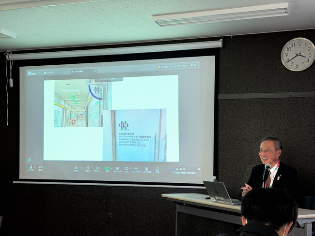 大阪・関西万博「ハンガリーパビリオン」建設をテーマに講演する橋本真典CEO(静岡市・レイアップ御幸町ビル)