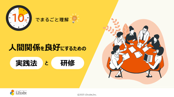 研修のスタイルにとらわれない企業向け人材育成サービスを提供する株式会社LDcube(本社:東京都千代田区、代表取締役社長:新井澄人、以下「当社」)は、「10分でまるごと理解!人間関係を良好にするための実践法と研修」を無料公開しましたので、お知らせします。