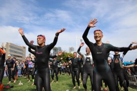 ▲日本全国のトライアスロンエイジグループの大会で「公式体操」として採用