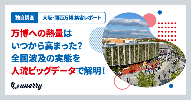 リアル行動データプラットフォーム「Beacon Bank」を運営する株式会社unerry(本社:東京都港区、代表取締役社長CEO:内山 英俊、以下、unerry)は、2025年4月13日(日)から10月13日(月・祝)までの184日間にわたって開催された大阪・関西万博について、人流ビッグデータを活用し、各都道府県からの初回来訪データを基に、開幕当初の「熱量の広がり方」を総括的に分析しました。