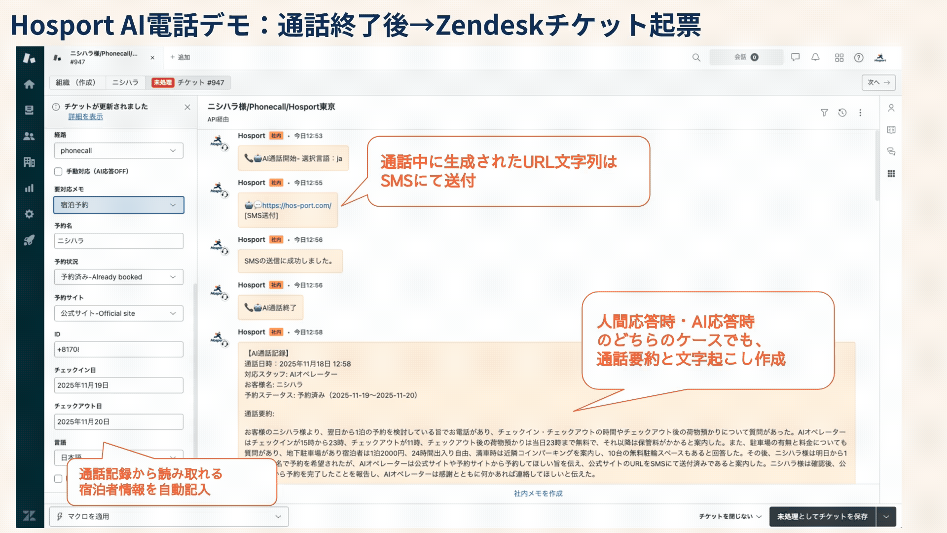 ※現時点ではPMS等との予約・在庫の自動連携は未対応のため、予約を希望されるお問い合わせの場合は公式サイト・各予約サイトのご利用を音声にてご案内します。