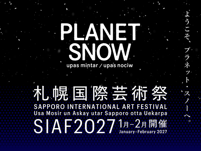 当日はSIAF実行委員会会長(札幌市長)、SIAF2027ディレクターチームに加え、今回新たに発表となる制作チームのメンバーが登壇。「PLANET SNOW‒upas mintar / upas nociw(ウパㇱ ミンタㇻ ウパㇱ ノチウ)」をテーマに、札幌をひとつの星に見立てて構築していくSIAF2027のコンセプト、過去開催から大きく転換する会場構成、そして国内外から選出された第1弾参加アーティストを紹介します。