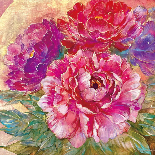 「満ちる ‐錦‐」(アクリルガッシュ・パステル・水彩・金箔、縦12×横14cm)55,000円