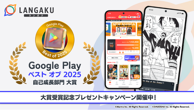 マンガを楽しみながら英語が身につく学習アプリ『Langaku(ランガク)』を運営する Mantra株式会社(東京都文京区、代表取締役:石渡 祥之佑、URL:https://mantra.co.jp/)は、Googleが毎年優れたアプリ・ゲームを表彰する「Google Play ベスト オブ 2025」において、『Langaku』が日本地域「Google Play ベスト オブ 2025(自己成長部門)」の大賞を受賞したことをお知らせいたします。