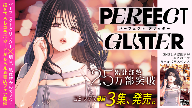 『パーフェクトグリッター』第3集の発売を記念し、全国のフェア参加書店にて『パーフェクトグリッター』シリーズのコミックス1冊ご購入ごとに、「『パーフェクトグリッター』×『明日、私は誰かのカノジョ』の描き下ろしコラボカード(全2種)」がもらえる書店フェアを、2025年11月28日(金)より開始いたします。