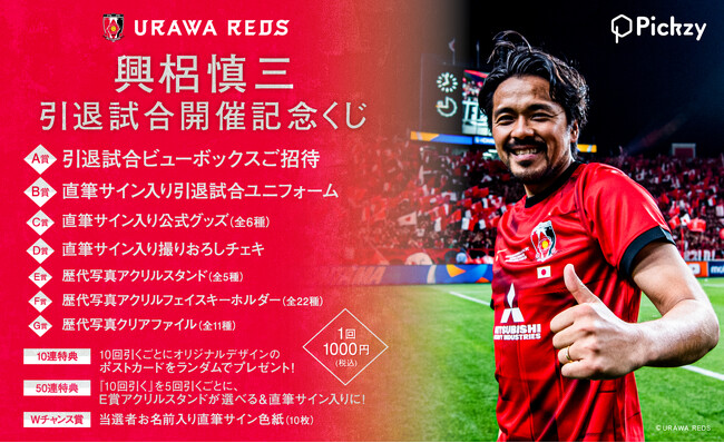 2025年11月19日(水)より、ぴあのオンラインくじサービス「Pickzy(ピクジー)」(https://pickzy.pia.jp/)にて、浦和レッズ所属・興梠慎三選手のオンラインくじを販売開始いたしました。