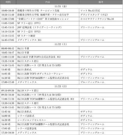 2025 SUPER FORMULA Rd.10,11,12 タイムスケジュール(予定)