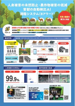 Bアラートは、トレイルカメラの画像からAIがツキノワグマを自動検出し、関係者へリアルタイム通報を行うシステムです。