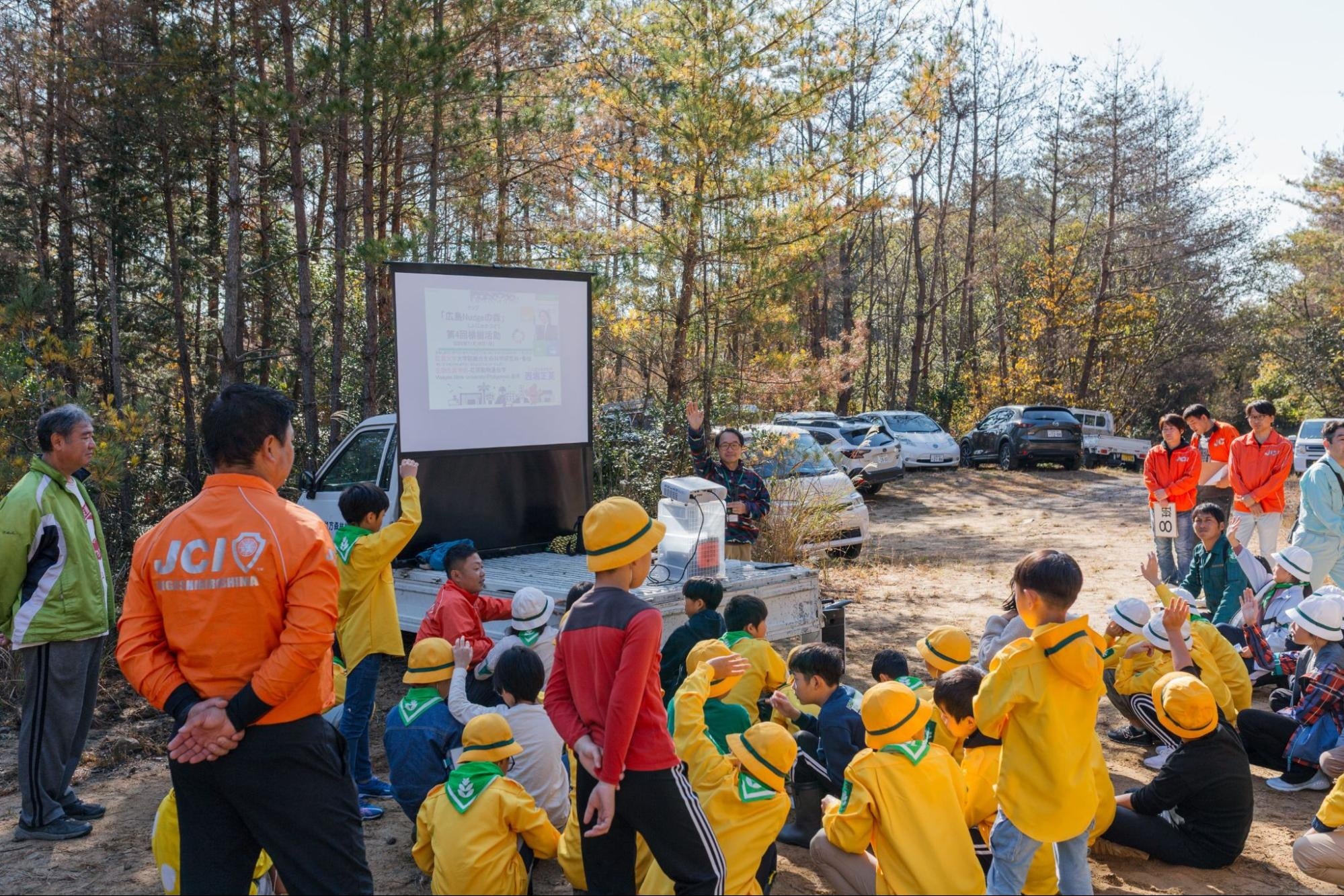 4年目を迎えた「広島Nudgeの森」植樹活動も、地域を横断した協力体制のもと実施されました。東広島市・東広島市入野財産区・賀茂地方森林組合に加え、地元団体として東広島青年会議所及び東広島みどりの少年団、協賛企業からヤマネホールディングス株式会社および広島ドラゴンフライズ、そして昨年に引き続き広島大学の研究チームが参加。行政・企業・大学・市民がひとつの森づくりに関わる、広がりのある活動となりました。