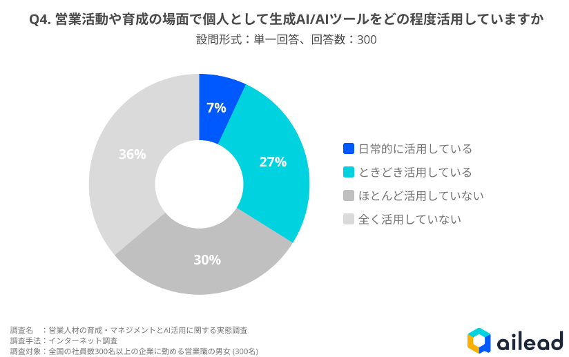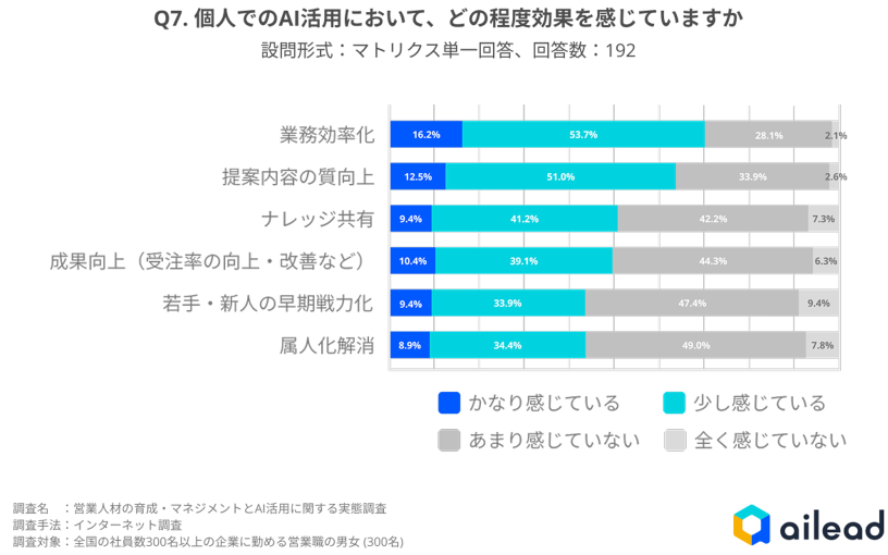 - 個人でAIを日常的に活用している営業職はわずか7%