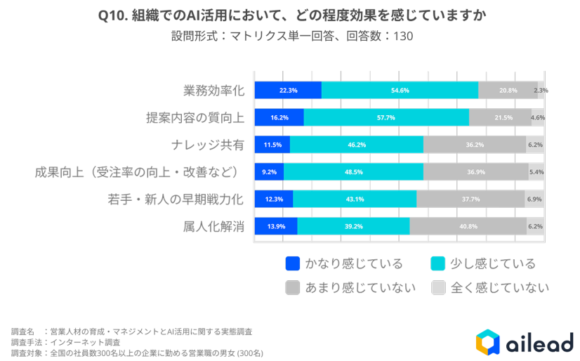 ※本調査データを引用・掲載される際は、調査名「営業人材の育成・マネジメントとAI活用に関する実態調査(2025年)」および調査元「ailead」を明記ください。