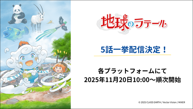 CLASS EARTH株式会社(東京都中央区)と株式会社Vector Vision(東京都世田谷区)が制作する、地球の未来を担う子どもたちに向けた教育アニメ『地球のラテール』を、本日11月20日(木)より、順次各プラットフォームにて配信を開始いたします。