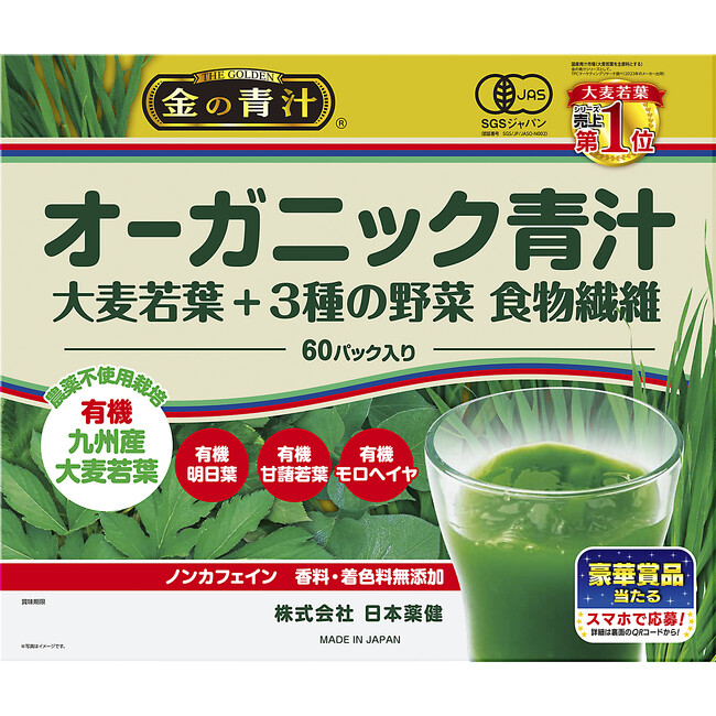 株式会社日本薬健(本社:東京都港区新橋二丁目20番15号、代表取締役:丸山 忠生)は、「金の青汁」ブランドより、九州産の有機大麦若葉をはじめ、 3種の有機野菜(有機明日葉・有機甘藷若葉・有機モロヘイヤ)を配合した、有機JAS認証取得の有機青汁を、2025年11月14日(金)よりAmazonで発売中です。