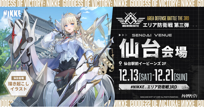 株式会社アルジャーノンプロダクト(本社:東京都台東区)は、2025年12月13日(土)から仙台駅前イービーンズにて全国6都市を巡るPOP UPイベント「『勝利の女神:NIKKE』エリア防衛戦 第三弾」を実施することを発表いたしました。