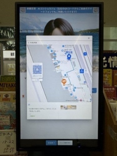旅行者が、案内役のAIアバターに口頭で目的地を伝えることで、速やかにその所在地と適切なルートを提供するたけではなく、好みや趣味といった情報から、それに合致する施設を候補として提示します。また、目的地への案内では、デジタルサイネージ上に表示されるQRコードを、自身のスマートフォン等のデバイスで読み取ることで、特別なアプリケーションをインストールせずに、施設までのルートをシームレスに地図上に表示させながら旅行者を適切に導きます。