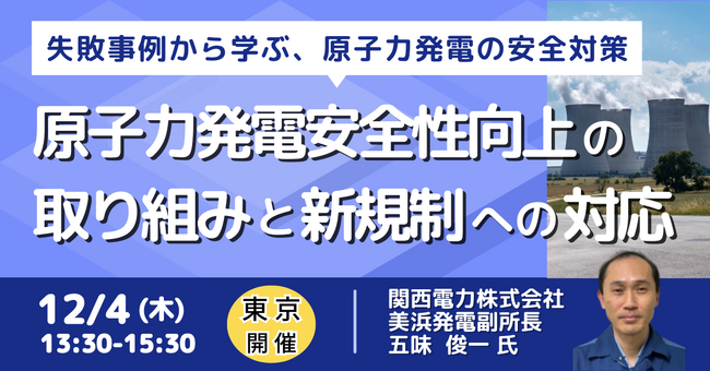 【JPIセミナー】関西電力(株)「原子力発電安全性向上の取り組みと新規制への対応」12月4日(木)<東京開催>