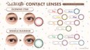 グレーベースのサークルが輪郭をクールに強調し、内に向けてグラデーションのカラーが目元を印象付けます。ダイヤモチーフがレンズの中にさりげなくあしらわれ、ハイライトのように瞳に輝きを与えます。