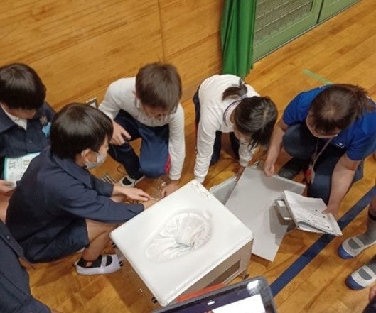 【浜小学校防災教育 ラップ式トイレ】