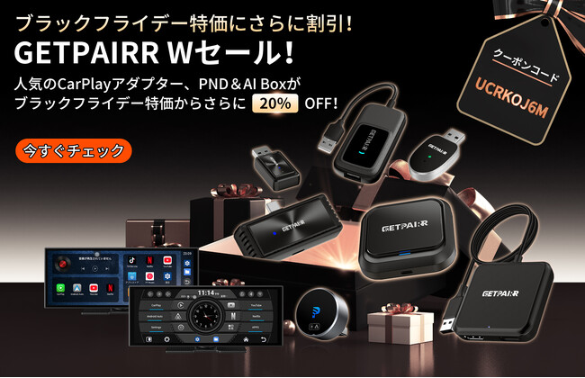 GETPAIRR|車載ワイヤレスCarPlay & Android Autoブラックフライデー特価 × 20%OFF!全シリーズが今年最大のダブル割引!