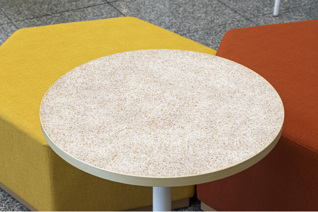 イトーキ、キユーピーの卵殻をアップサイクルした天板素材を製作