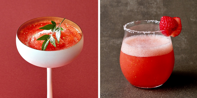 セラーバー「日本酒香るいちごのフローズンカクテル」(左)、リーチバー「いちごのソルティドッグ」(右)