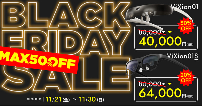 ブラックフライデーは、年に一度さまざまな商品がお得に購入できる大型セールとして注目されていますが、ViXionではこの期間に合わせ、シリーズ累計販売台数13,000台を超える人気のオートフォーカスアイウェアViXionシリーズを、過去最大の大特価となる最大50%オフのスペシャルプライスでご提供します。