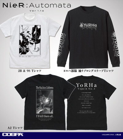 アニメ『NieR:Automata Ver1.1a』より、2B、9S、A2の「Tシャツ」「パスケース」、ヨルハ部隊の「ロングTシャツ」「刺繡ローキャップ」などが登場!【株式会社コスパ】