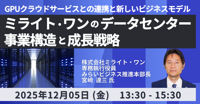 【JPIセミナー】「(株)ミライト・ワンのデータセンター事業構造と成長戦略」12月5日(金)開催