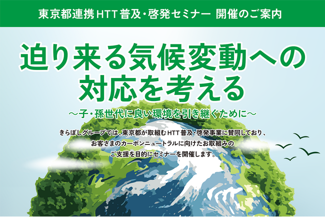 その取組みの一環として、気候変動やカーボンニュートラルに向けた支援をテーマとした、東京都連携HTT普及・啓発セミナーを開催しますのでお知らせいたします。
