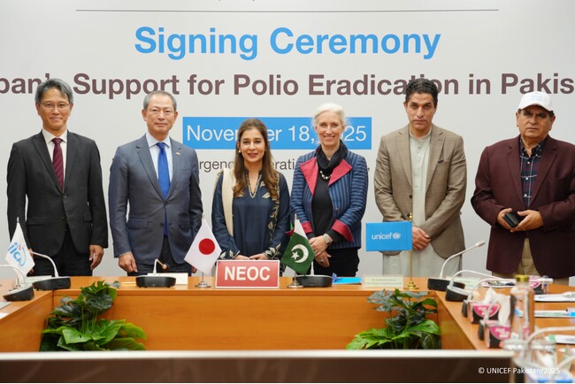 日本政府は、パキスタンにおけるポリオ根絶に向けた取り組みへの継続的な支援の一環として、必要不可欠な経口ポリオワクチンを調達するため、国連児童基金(UNICEF)に対し5億1,500万円の無償資金協力を決定しました。本資金協力により、パキスタン・ポリオ根絶事業は、2026年のポリオ予防接種キャンペーンに向け、2,400万回以上のワクチンを調達することが可能となります。